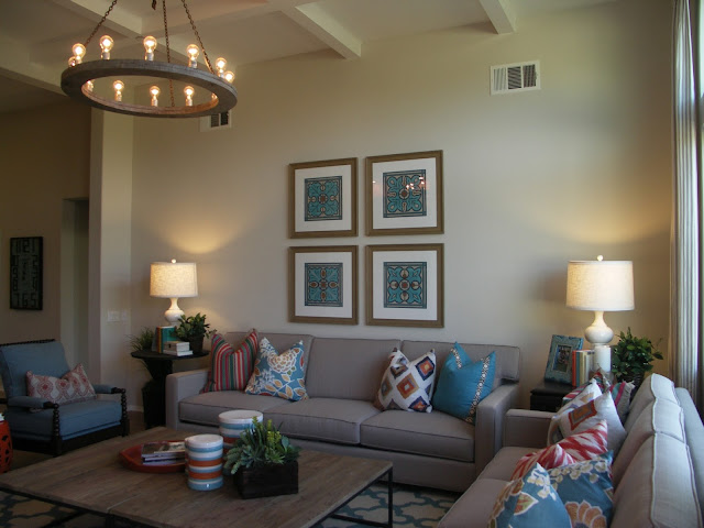 Today I wanted to share some raw/unedited/non-Photoshopped snapshots of a job I designed about 18 months ago. What really made this otherwise ordinary tract home stand out were the 13ft ceilings in the open living and kitchen area. I won't go too much into detail on this house (for lack of time today), but you'll get a peek at the Great Room, Kitchen, Master Bedroom and Home Office. I hope you enjoy and find some inspiration here!